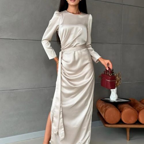 Satin Long Sleeve Gown Elegant Maxi Dress For