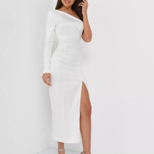 White One Shoulder Satin Dress Elegant Long Sleeve