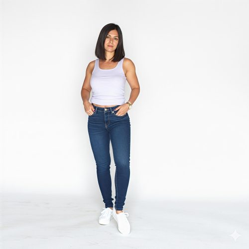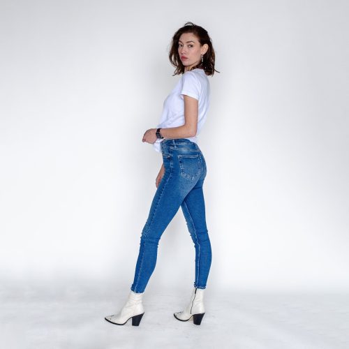 High Waisted Skinny Jeans: Stretch Denim Classic Blue