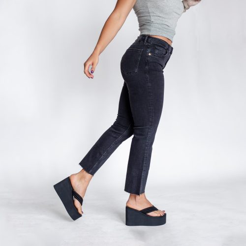 Highwaisted Black Straight Leg Jeans: Raw Hem Ankle